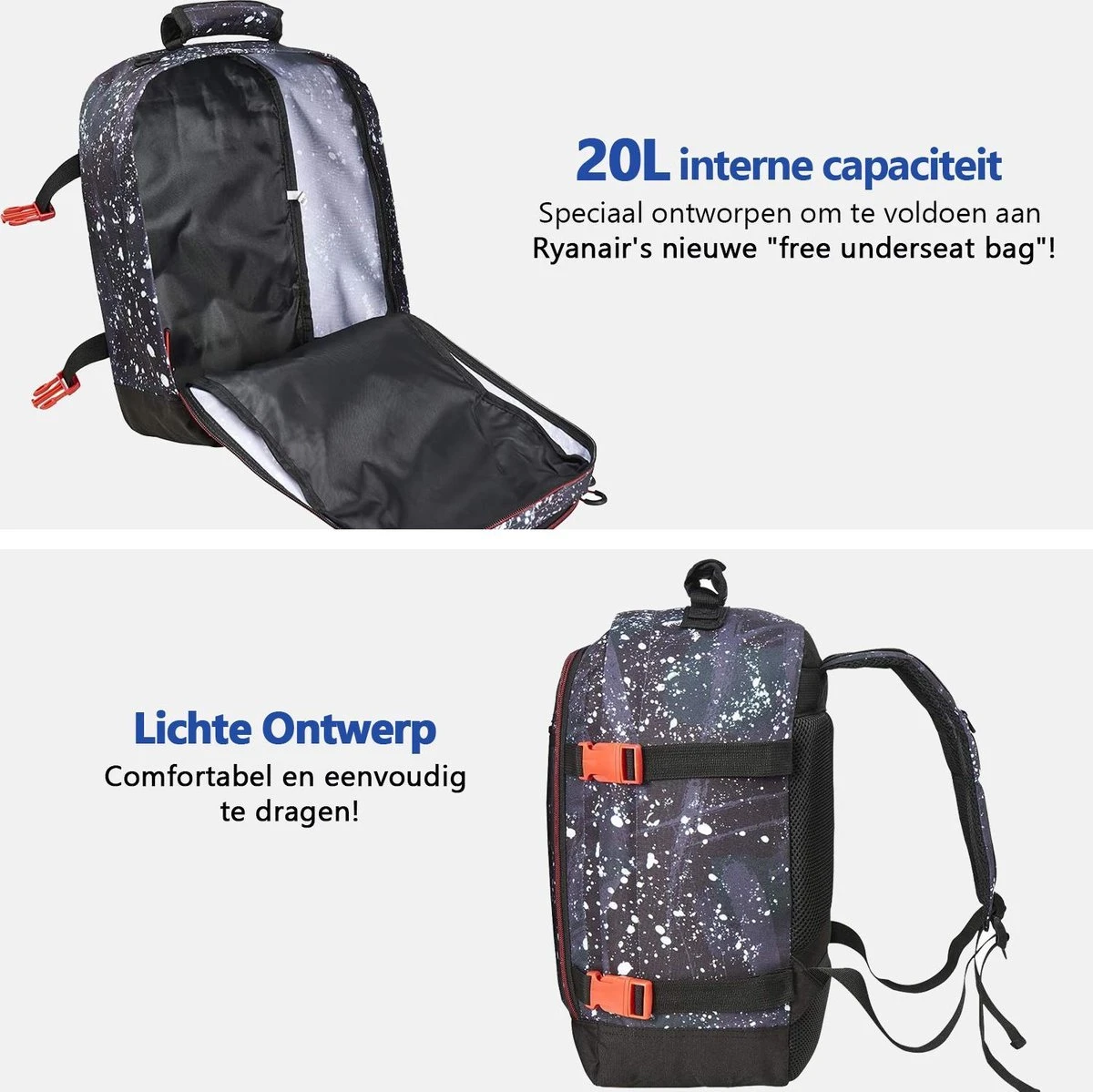 ➡️ Nieuw in de serie Metz van CabinMax! De CabinMax Metz 20L stowaway is speciaal ontworpen om te voldoen aan Ryanair’s nieuwe “free underseat bag”, waardoor de Metz 20L de perfecte handbagage voor Ryanair-vluchten is! Veel weten niet dat je naast je normale handbagage-koffer ook nog een tweede, kleinere item mee mag nemen. De afmetingen van de Metz 20L maken hem uitermate geschikt als tweede item bij Ryanair. Je kan hem makkelijk onder je stoel kwijt, en met de rugzakriemen is hij makkelijk mee te dragen wanneer je loopt. Naast het vliegen op Ryanair, is de Metz 20L goedgekeurd voor alle andere grote luchtvaartmaatschappijen, wat bewijst dat dit compacte en veelzijdige stuk handbagage verre van een one-trick pony is.
