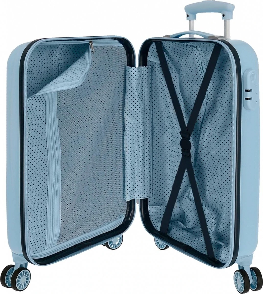 Deze vrolijke Disney Frozen kinderkoffer is perfect voor de echte Frozen fans. Kids kunnen hun handbagage zelf inpakken ! Het trolley is te sluiten met een cijferslot. Gemakkelijk te gebruiken door middel van de vier soepele spinning wieltjes en de verstelbare trekstang. Aan de gevoerde binnenkant zitten inpakriemen en een afsluitbaar compartiment.IATA norm voor handbagage- Geschikt voor kinderen- Handbagage formaat- Sluit middels een cijferslot- Lichtgewicht en duurzaam- Handvat aan de bovenzijde- Verstelbare trekstang- Vier stevige spinning wielen- Gevoerde binnenkant met inpakriemen- Afsluitbaar compartiment.Afmetingen H 55 cm x B 35 cm x D 20 cmInhoud 33 literkleur licht blauw