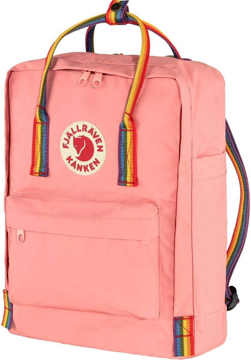 Rugtas uit de Kanken serie van Fjällräven. Speciale uitgave Kånken met regenboogbanden. Onderdeel van het initiatief Arctic Fox. Deze rugzak is ideaal voor school, een dag weg of voor naar het werk. De rugtas is voorzien van een groot hoofdcompartiment met een ruime opening en een kleiner voorvak. In twee zijvakken kunnen kleinere spullen worden opgeborgen. Zowel het voorvak als het hoofd compartiment is afgesloten door middel van een stevige rits. De tas bevat een uitneembaar matje, schouderriemen en handvatten voor optimaal draaggemak. Gemaakt van het unieke Vinylon F materiaal, dit materiaal is slijtvast en weerbestendig. Het logo op de rugtas is reflecterend, aan de binnenzijde bevind zich een adreslabel.
