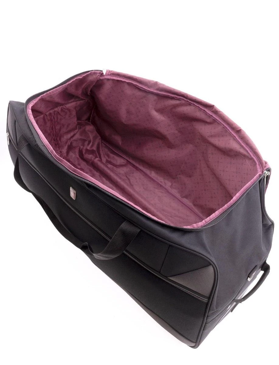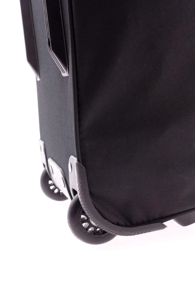 Op de voorzijde van de tas zit een ritsvak. De wielen zorgen voor optimaal reiscomfort en als de tas leeg is kan hij plat gemaakt worden waardoor hij weinig ruimte inneemt en bijv. onder een bed geschoven kan worden