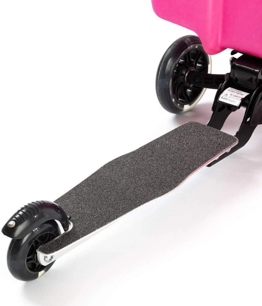 Een step en een koffer. Ferry Fuchsia houdt al je spullen veilig. Deze lieve uil zorgt ervoor dat je op avontuur altijd kan meedoen. Ferry valt op door haar roze kleur en zachte vacht. Deze bagagetas kan tegen een stootje, en dat moet ook wel want Ferry is naast koffer ook als step te gebruiken! Met een klik op de knop rol jij met Ferry Fuchsia over de stoepen. Van lunchtrommels tot hoofdkussentjes: Ferry eet ze op en houdt ze veilig. Avontuur in de avond? Ferry heeft lampjes in haar pootjes. Deze lichten op en zorgen voor een veilige reis. Ferry Fuchsia kan 21 liter water drinken/ aan spullen opeten.