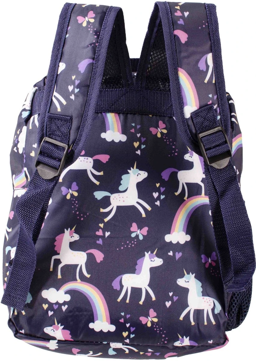 Superleuk blauwe rugzak voor de eerste schooljaren vol met vrolijke Eenhoorns & Regenbogen!