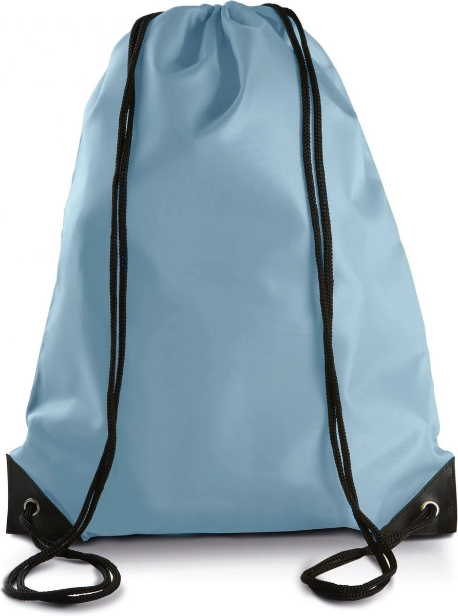 Sport gymtas/draagtas in kleur lichtblauw met handig rijgkoord 34 x 44 cm van polyester en verstevigde hoeken.
