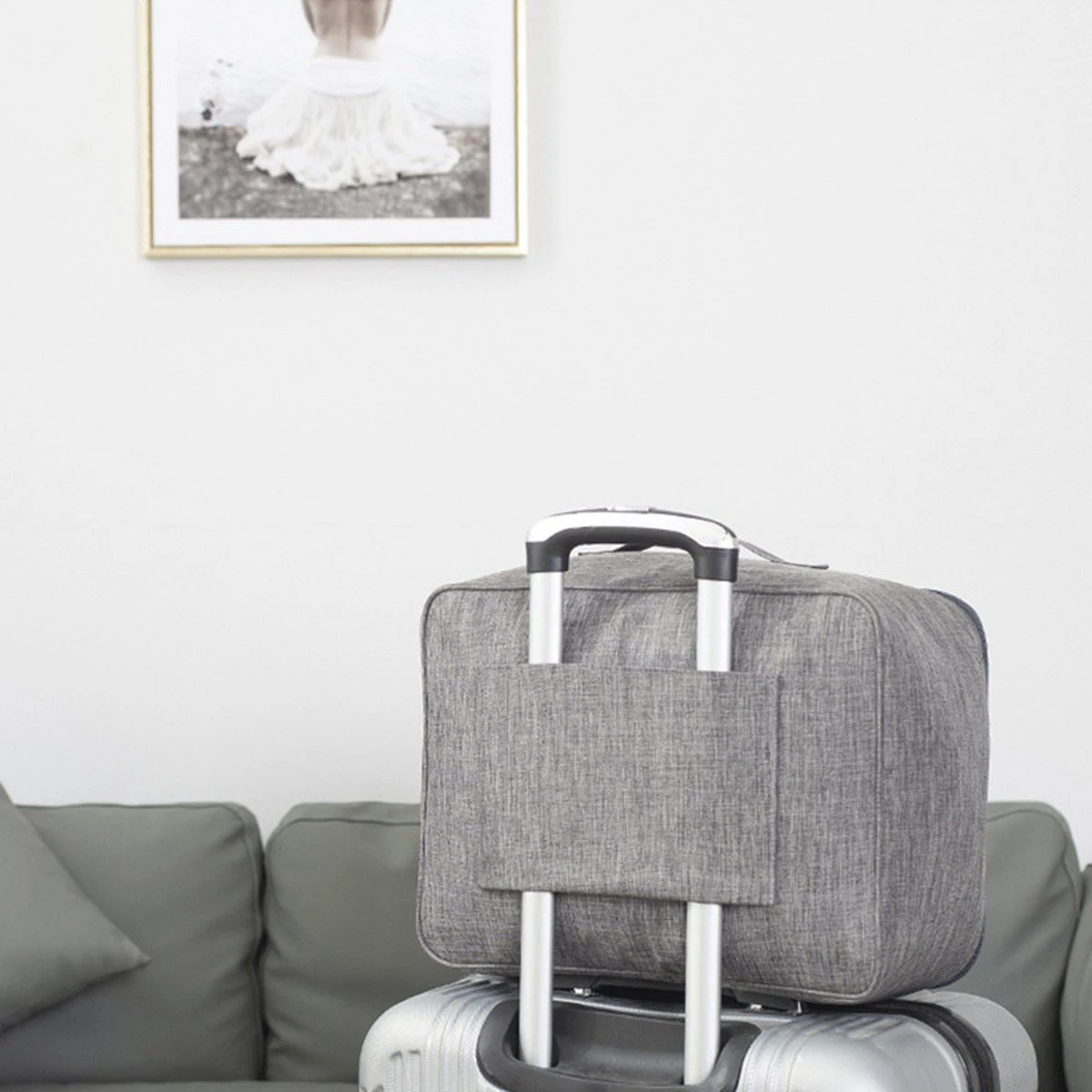 - Deze opbergtas heeft aan de achterzijde een handig insteekvak. Tevens kan de reistas hiermee bevestigd worden aan de trekbeugel van een reiskoffer. Het hoofdvak kan via een tweerichtingsrits geopend worden.
