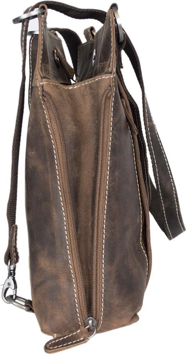 Deze lederen rug- of schoudertas is ideaal voor een dagje uit, je kunt al je belangrijke spullen mee nemen. Als een rugtas (de schouderbanden lopen gekruist waardoor de inhoud van je tas niet toegankelijk is) of als schoudertas met een verstelbare schouderband.