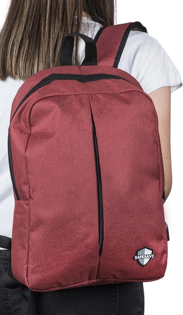 Functionele rugtas in strak design van het merk SafeSave. Op zoek naar een functionele rugtas van goede kwaliteit? Deze tas van SafeSave is dankzij de hoogwaardige kwaliteit en functionele vormgeving uitermate geschikt als schooltas, reistas of voor het werk. De tas heeft twee compartimenten, ideaal voor laptop en schoolboeken of andere documenten. De tas beschikt tevens over een USB ingang.